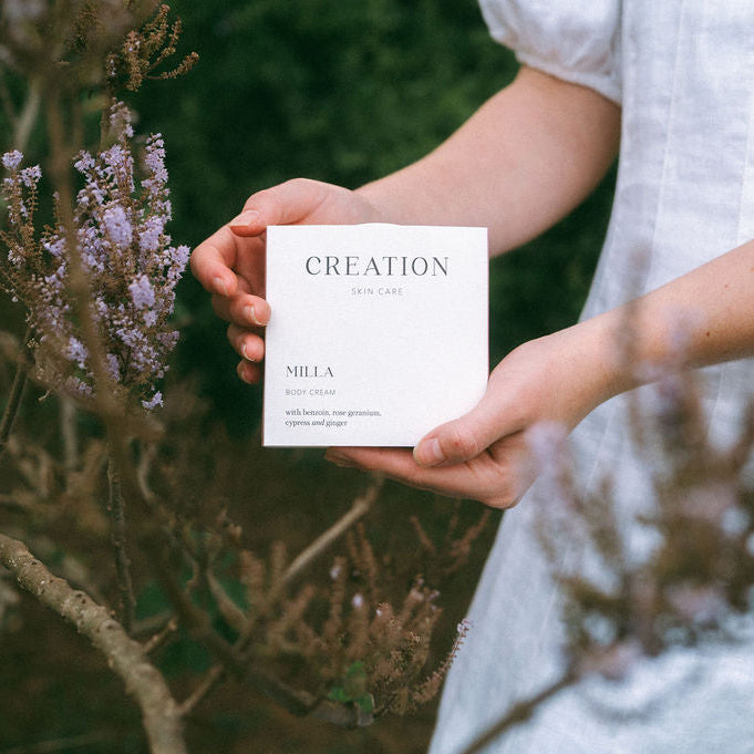MILLA is inspired by simple elegance, the subtle glamour of French beauty and the essence of the feminine. Date nights, kisses in the rain and the beautiful doing that comes as an expression of being. Infused with the warm spiciness of vanilla Benzoin for healing and strengthening. The gentle floral of Rose Geranium to balance and lift the spirit. Green and earthy Cypress to tone and brighten, and Ginger to warm and invigorate.